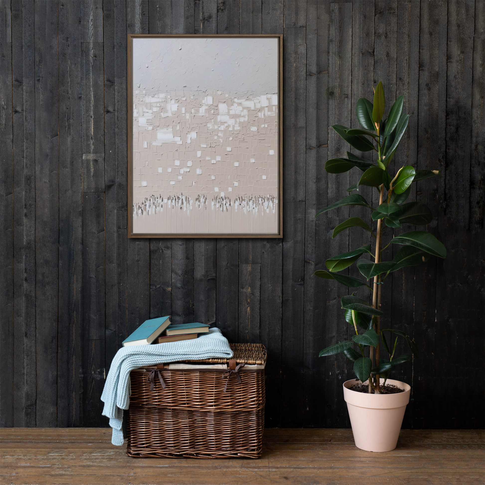 - The framed canvases with brown and black frames have a black inside around the canvas, and the canvases with white frames have a white inside around the canvas.
